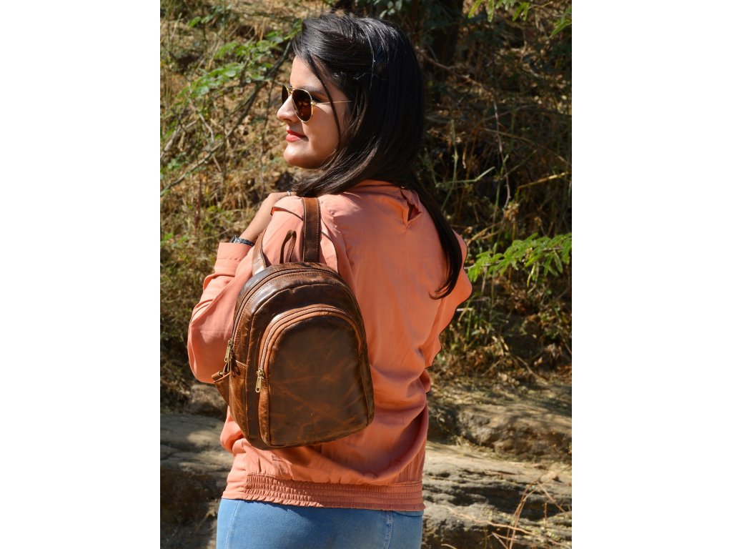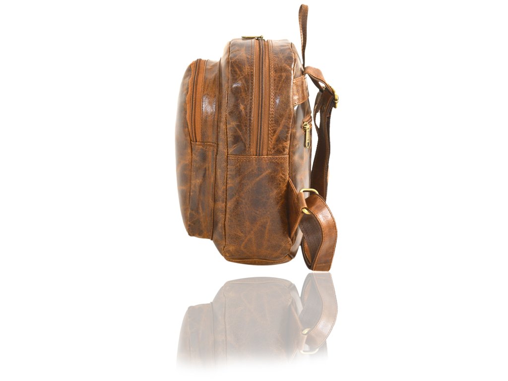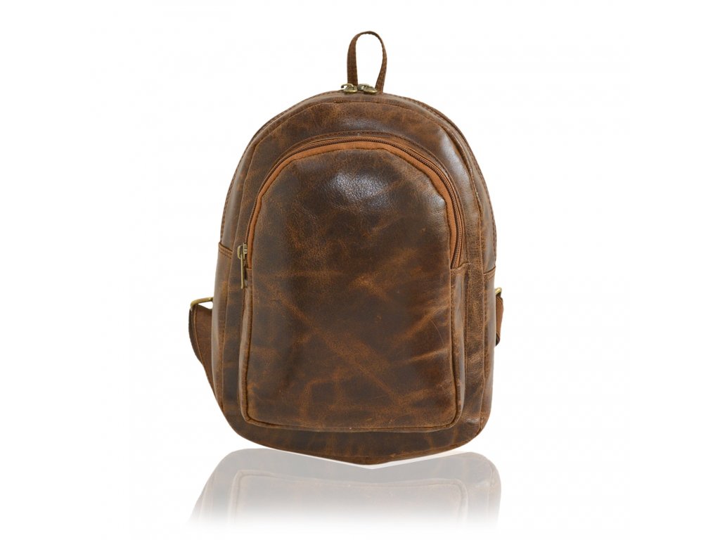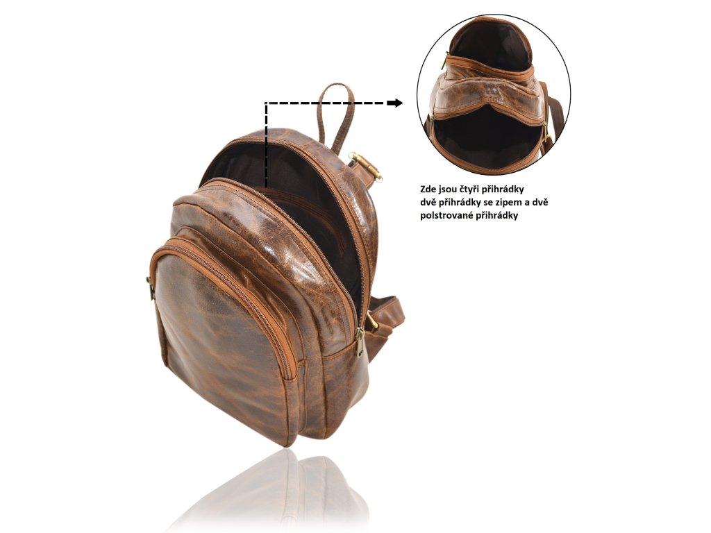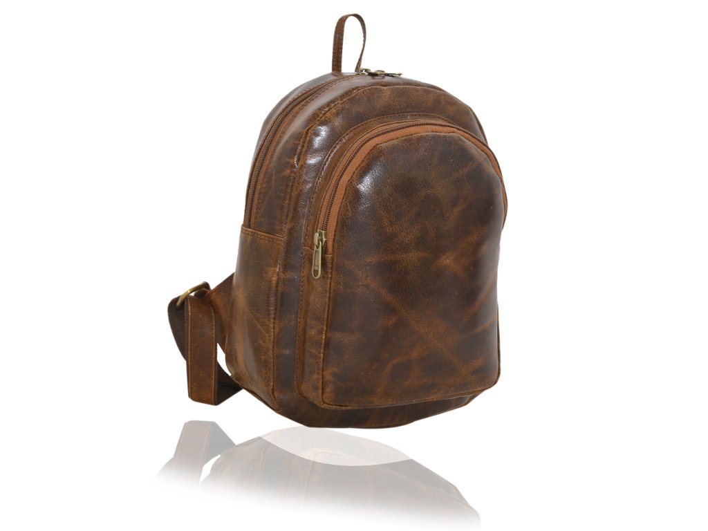 Kožený batoh Kirké. Batoh je uzavíratelný na zip. Má jednu hlavní komoru, jednu zadní kapsu a jednu prostornou přední kapsu. Uvnitř hlavní komory jsou dvě otevřené přihrádky a dvě přihrádky uzavíratelné na zip. Ramenní popruhy jsou délkově nastavitelné. Batoh má také kožený úchyt pro nošení v ruce. Je velice pevný a odolný. Batoh je vyroben z kozí kůže.Doplňkové parametry