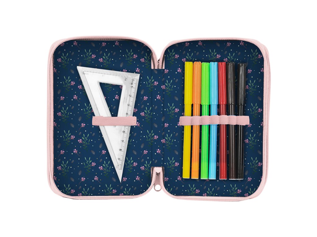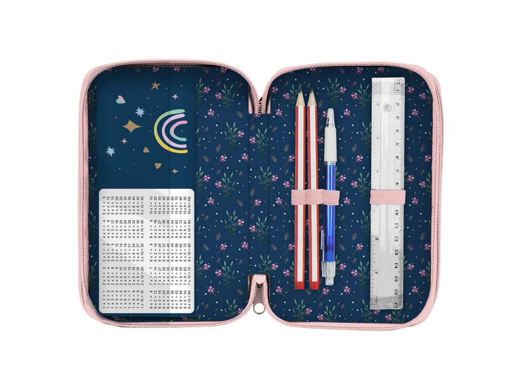 Školní penál Unicorn třípatrový Penál má černou barvu s potiskem jednorožce. Penál je třípatrový. Penál je dodáván s vybavením,/strong>, obsahuje 2 propisky, 2 tužky, ořezávátko, gumu, různá pravítka, pastelky, fixy, linery násobilku. Má několik úchytů na psací potřeby pro jejich organizaci. Má zapínání na zip.Doplňkové parametry