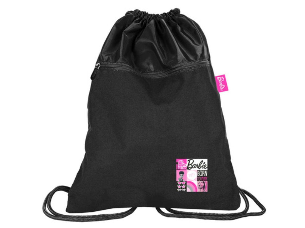 Vak na záda Barbie pevný černý Vak má černou barvu. Uzavírá se pomocí stahovacích šňůrek. Na přední straně je kapsička na zip. Zadní strana vaku je vyztužená a pokrytá síťovinou. Silné pletené šňůrky umožňují nosit vak na přes rameno nebo na zádech. Je vhodný například na boty nebo sportovní oblečení.Doplňkové parametry